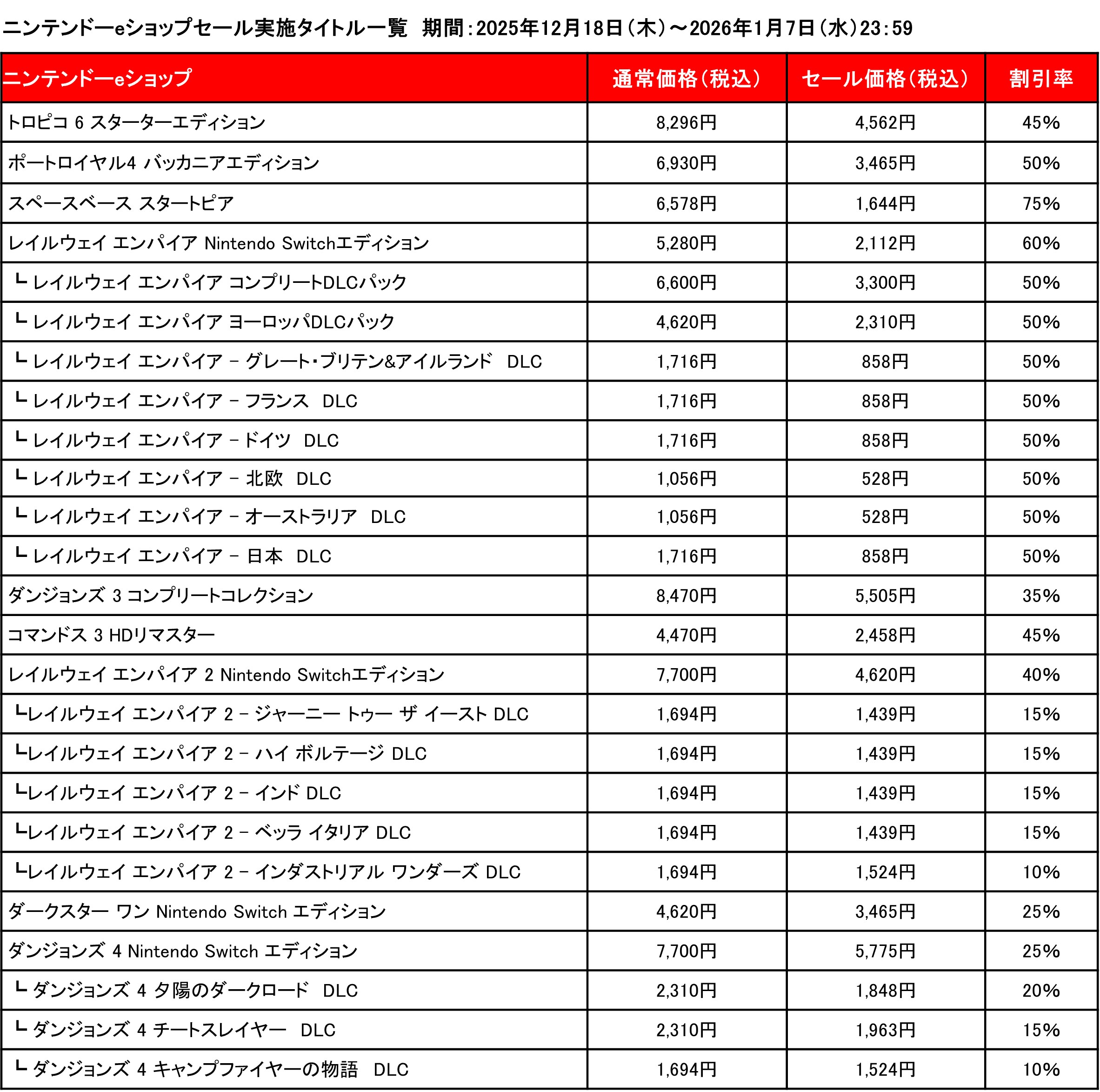 - ニンテンドーeショップ 開催期間:2025年12月18日(木)~2026年1月7日(水)23:59